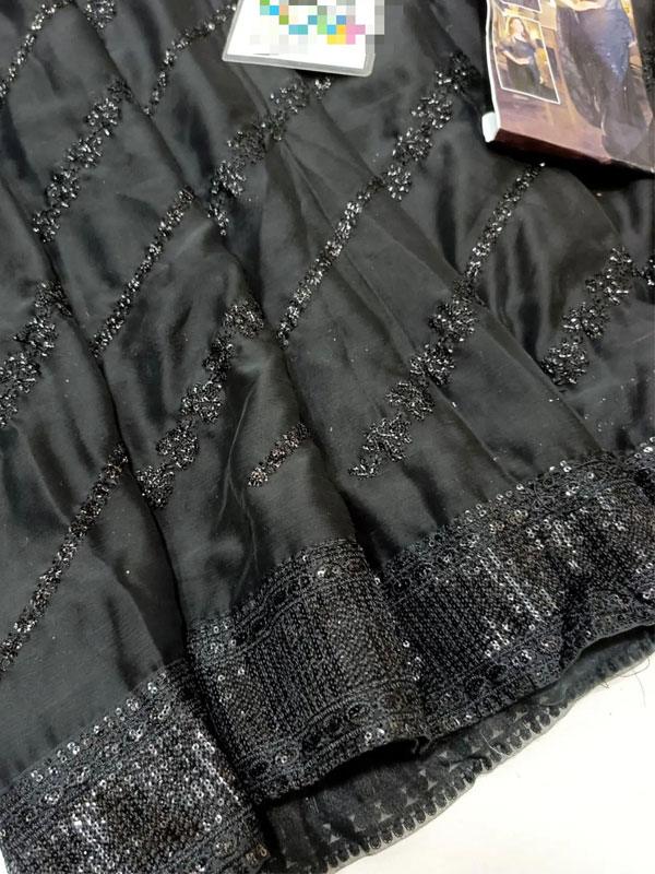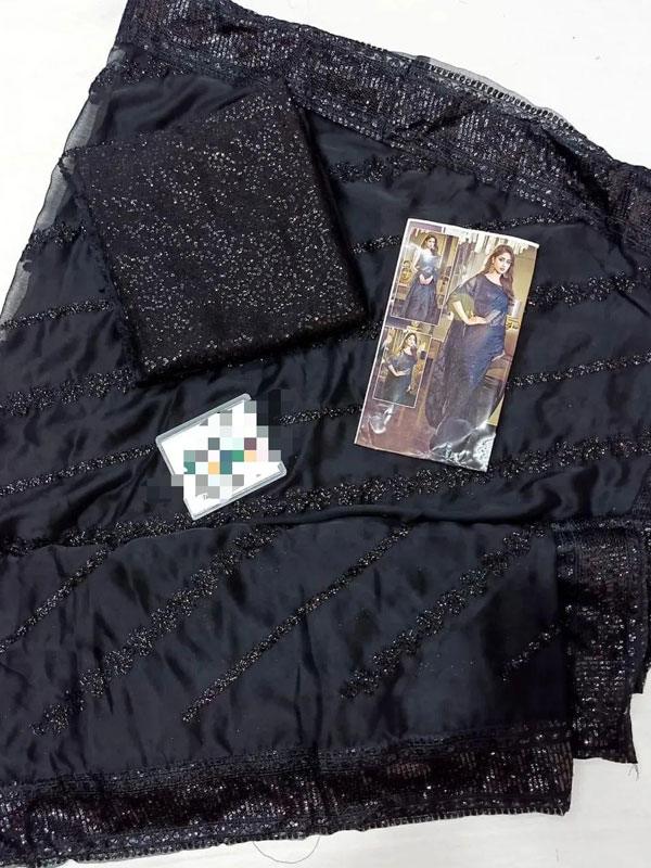 Heavy Embroidered Chiffon Saree with Spangle Work – Unstitched