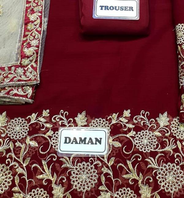 • Full Chiffon Maxi Ghair Embroidery Daman – Eye-catching and ornate.