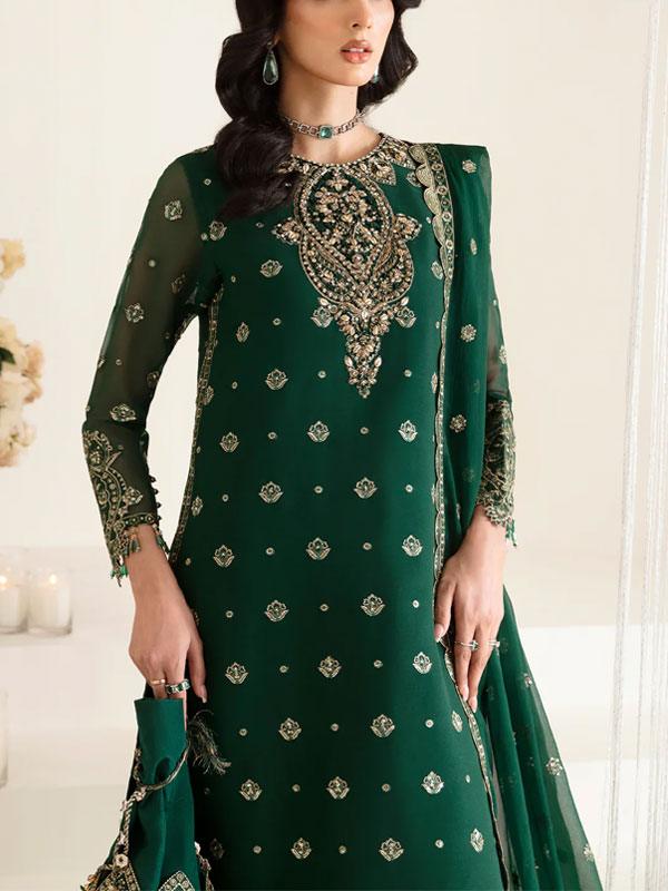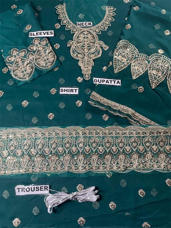 Shine at weddings, parties, and festive occasions with this elegant unstitched chiffon dress set. Crafted from premium chiffon and silk, it features intricate sequence embroidery, handwork, and delicate detailing for a sophisticated, traditional look.