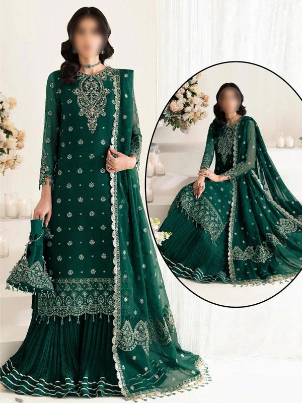 Embroidered Chiffon Dress with Silk Gharara – Unstitched