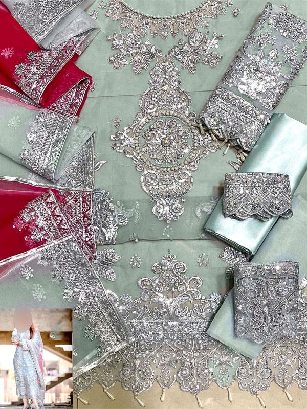 Latest Heavy Embroidered Organza Dress with Embroidered Organza Dupatta (Unstitched)