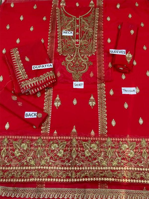 Elevate your party look with this luxurious chiffon dress, featuring intricate embroidery on premium chiffon, paired with a matching embroidered dupatta and a comfortable plain trouser. Perfect for weddings, formal parties, and festive events.