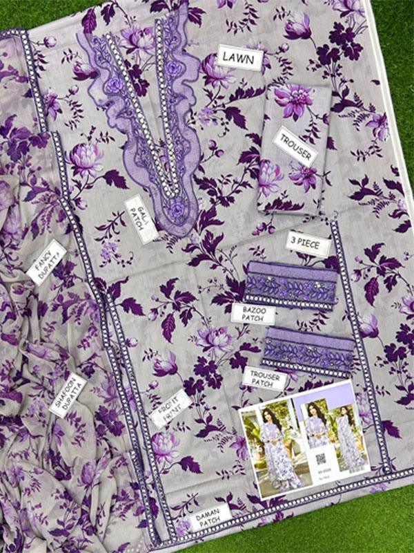 Front: Digital printed lawn front with an elegant embroidered neck patch