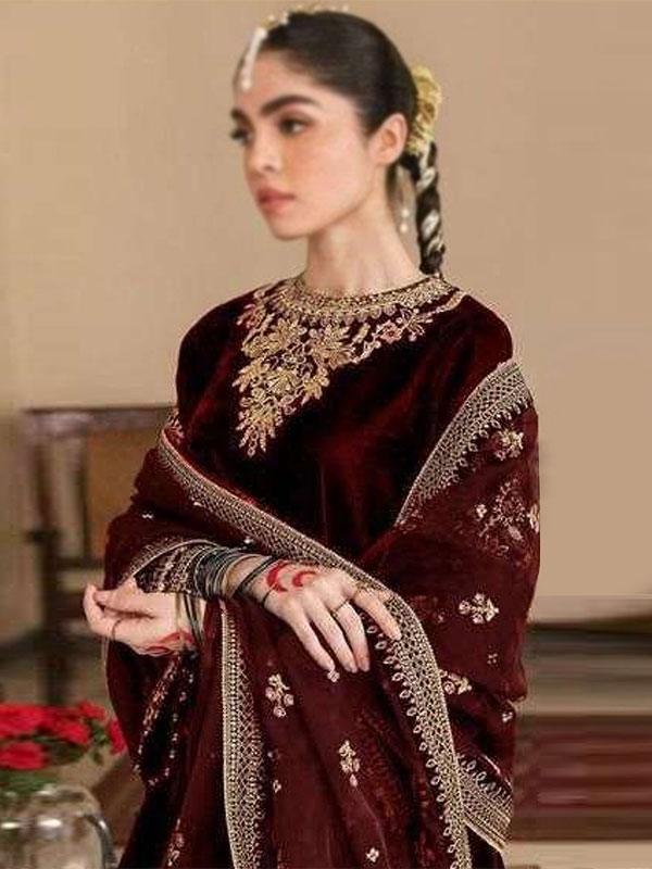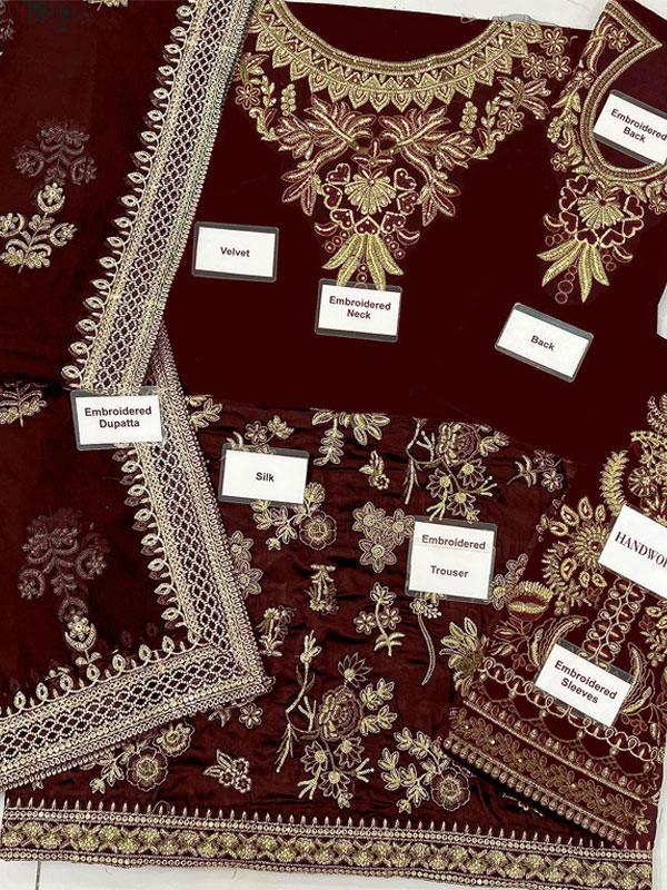 Velvet Heavy Embroidered Dress with Organza Dupatta & Silk Trouser (Unstitched)