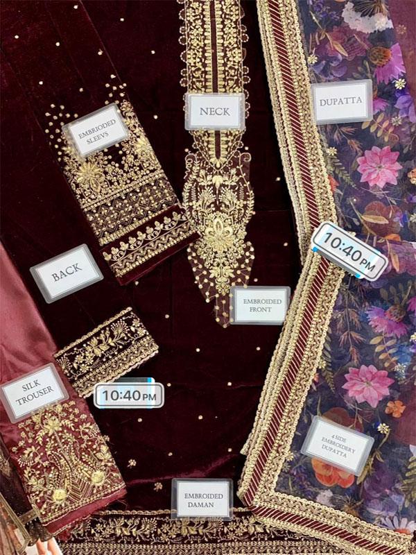 Luxury Heavy Embroidered Velvet Wedding Dress with Silk Trouser (Unstitched)